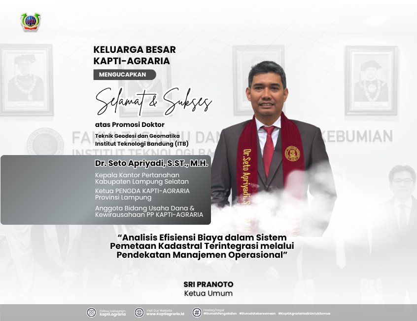 06Jul Modernisasi Pertanahan Melalui Efisiensi Biaya: Gagasan inovatif Dr. Seto Apriyadi melalui disertasinya yang berhasil dipertahankan di bidang Teknik Geodesi dan Geomatika, Institut Teknologi Bandung (ITB)